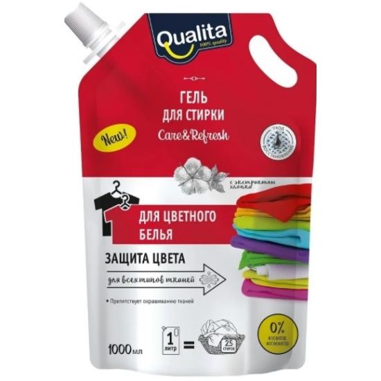 Средство жидкое 1л QUALITA гель для стирки цветного белья дой-пак 1/6 купить в Нижнем Новгороде по низкой цене оптом и дешево с доставкой