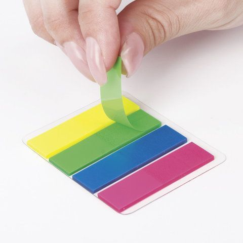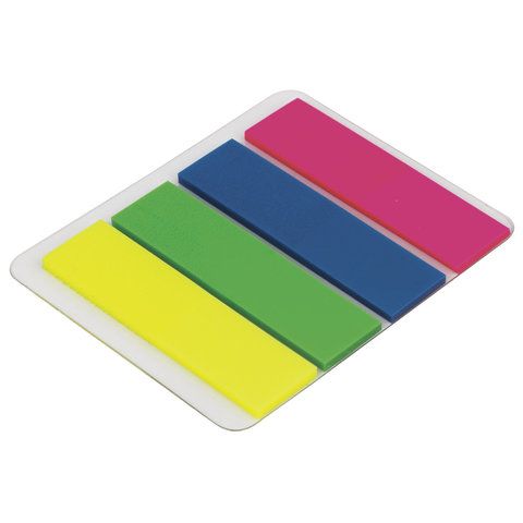 Закладки клейкие пластиковые 12х45мм 4 цв х25л неон STAFF 1/30/540