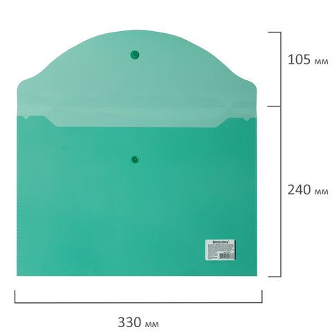 —Папка-конверт с кнопкой А4 BRAUBERG, прозрачная, зеленая, до 100 листов, 0,15мм 1/15/90