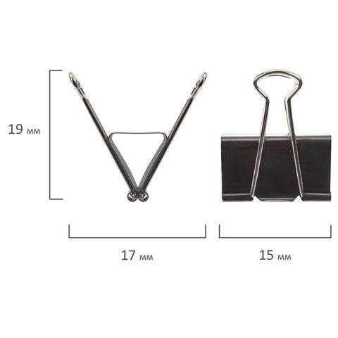Зажимы для бумаг 15мм на 45л (12шт) черные в картонной коробке Brauberg 1/12 купить оптом и в розницу в Нижнем Новгороде