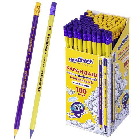 —Карандаш ч/гр НВ пластиковый корпус ассорти с резинкой Юнландия 1/100