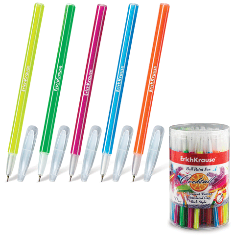 Ручка шариковая синяя узел 0,6мм линия 0,32мм корп цветн.ассорти ErichKrause Coctail 1/60/1440 купить оптом и в розницу в Нижнем Новгороде