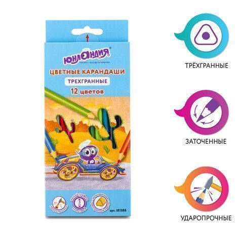 —Карандаши цветные 12цв трехгранные с заточкой ЮНЛАНДИЯ 1/12