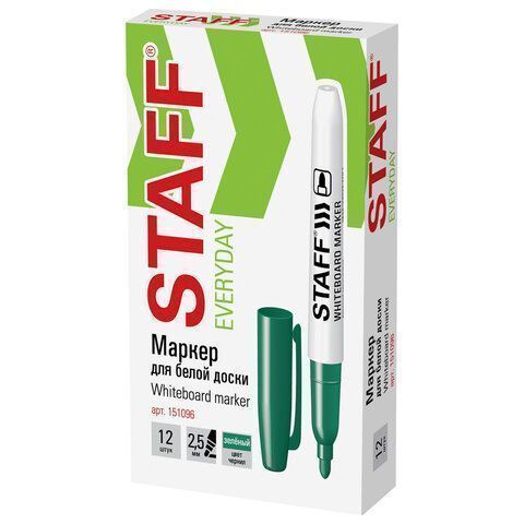 Маркер для доски зелёный 2,5мм тонкий корпус круглый наконечник STAFF 1/12 купить оптом и в розницу в Нижнем Новгороде