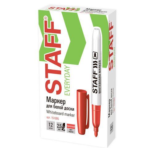 Маркер для доски красный 2,5мм тонкий корпус круглый наконечник STAFF 1/12 купить оптом и в розницу в Нижнем Новгороде