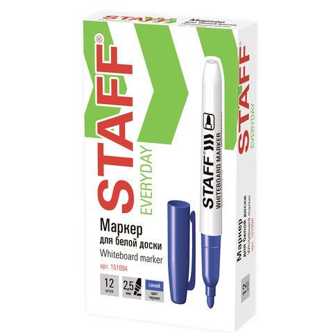 Маркер для доски синий 2,5мм тонкий корпус круглый наконечник STAFF 1/12 купить оптом и в розницу в Нижнем Новгороде