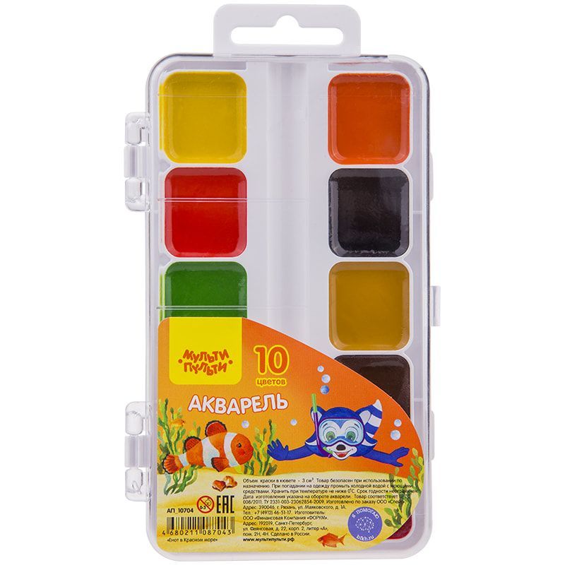 —Краски акварельные 10цв медовые Енот в Красном море Мульти-Пульти 1/12