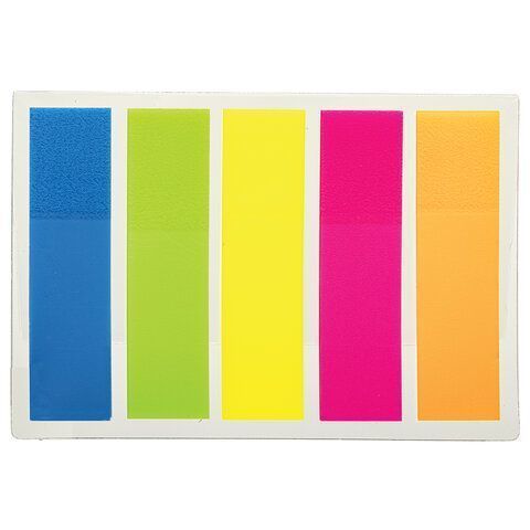 Закладки клейкие пластиковые 45х12мм 5цв.х20л неон STAFF 1/48