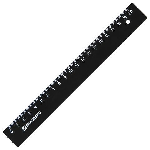 —Линейка 20см пластиковая непрозрачная черная BRAUBERG 1/20/100