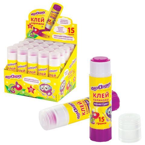 Клей-карандаш 15г обесцвечивающийся цветной ЮНЛАНДИЯ 1/20/480 купить оптом и в розницу в Нижнем Новгороде
