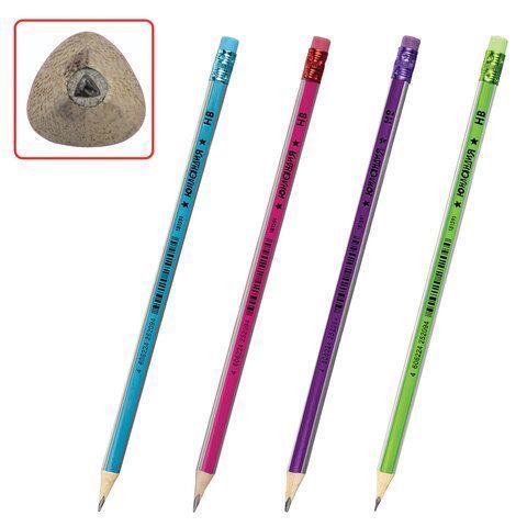 Карандаш ч/гр НВ дерев с ластиком трехгран ассорти ЮНЛАНДИЯ 1/100