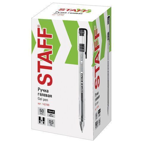 —Ручка гелевая черная 0,5мм линия 0,35мм Basic STAFF 1/50
