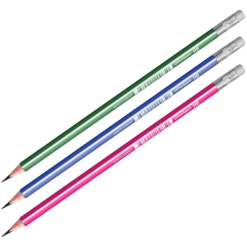 Карандаш ч/гр HB с ластиком, трехгранный, пластик, заточен, ассорти OfficeSpace 1/12/72 купить оптом и в розницу в Нижнем Новгороде
