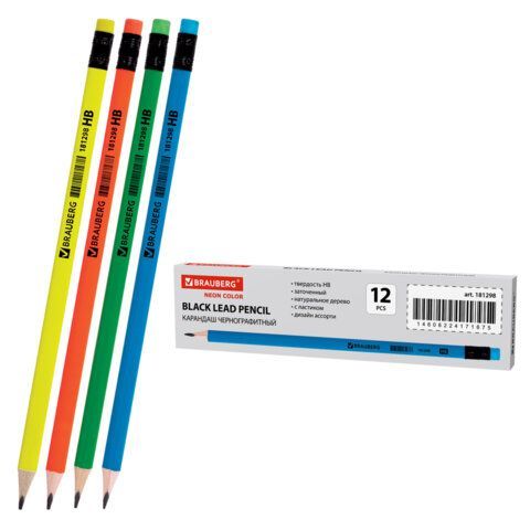 Карандаш ч/гр HB с ластиком трехгранный корпус неон ассорти Brauberg 1/12/2880 купить оптом и в розницу в Нижнем Новгороде