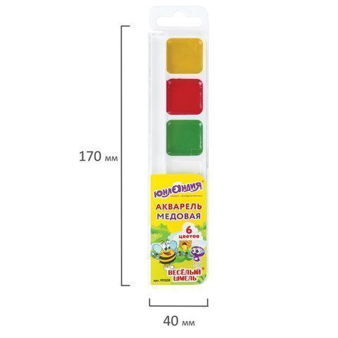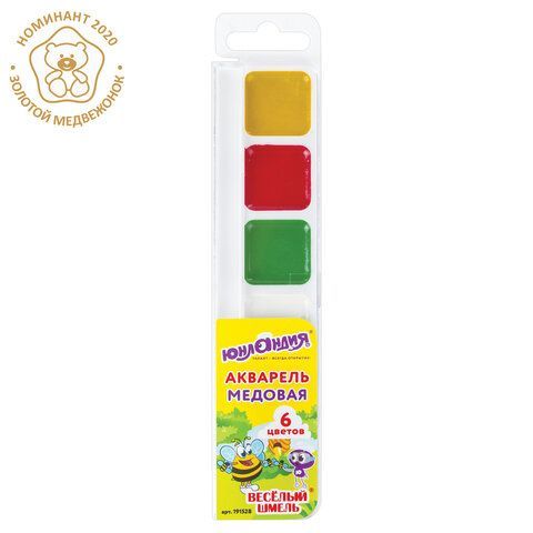 Краски акварельные 06цв медовые пластик ЮНЛАНДИЯ Веселый шмель 1/35 купить оптом и в розницу в Нижнем Новгороде