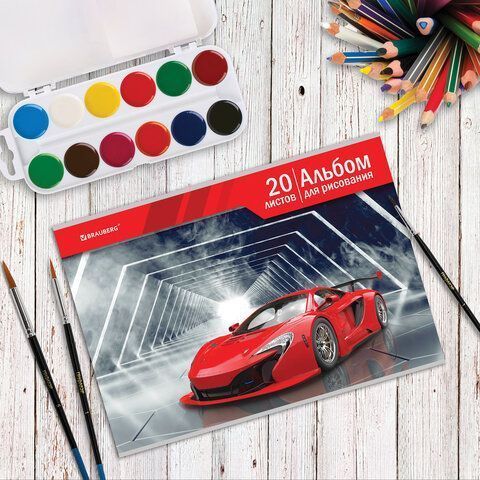 Альбом для рисования 20л А4 скоба, обложка картон Автомир BRAUBERG 1/20/60
