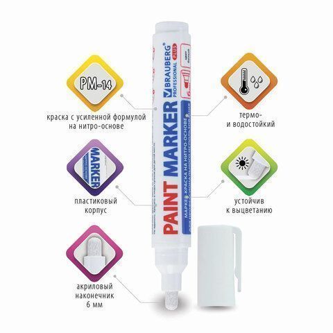 Маркер-краска лаковый белый 6мм нитро-основа BRAUBERG 1/12 (Клиент)