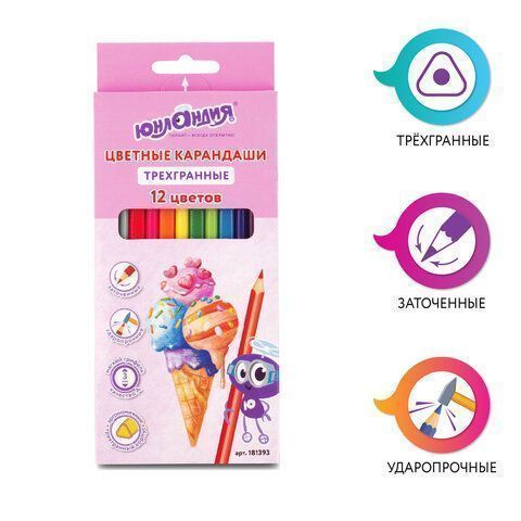 Карандаши цветные ЮНЛАНДИЯ Мороженое 12цв трёхгр купить оптом и в розницу в Нижнем Новгороде