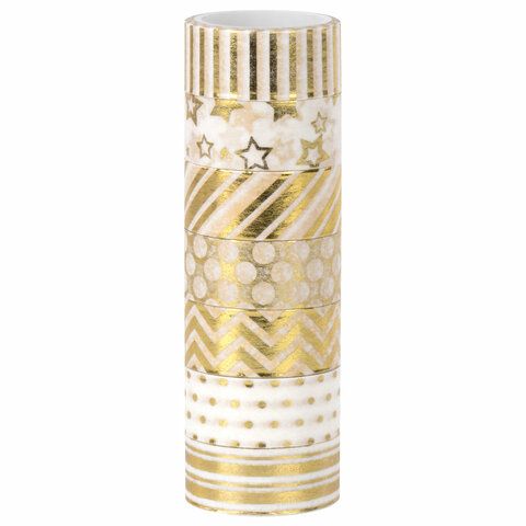 Клейкие Washi-ленты 7шт 3м ЗОЛОТИСТЫЕ с фольгой купить оптом и в розницу в Нижнем Новгороде
