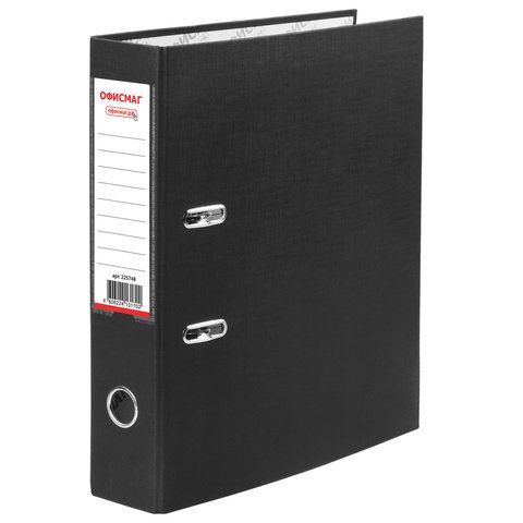 Папка-регистратор А4 75мм ОФИСМАГ с арочным механизмом, покрытие из ПВХ, черная 1/20