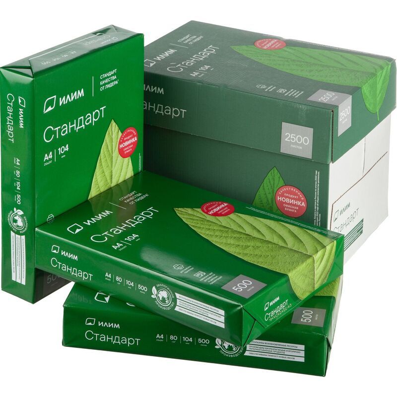Бумага А4 500л 80г/м2 офисная белизна 146% белая Илим Стандарт 1/5 купить оптом и в розницу в Нижнем Новгороде
