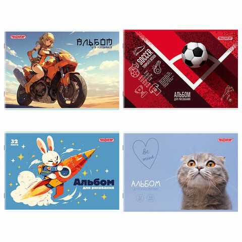 Альбом д/рис. А4 32л скоба обложка картон ПИФАГОР 203х288мм МИКС-1 1/8/40 купить оптом и в розницу в Нижнем Новгороде