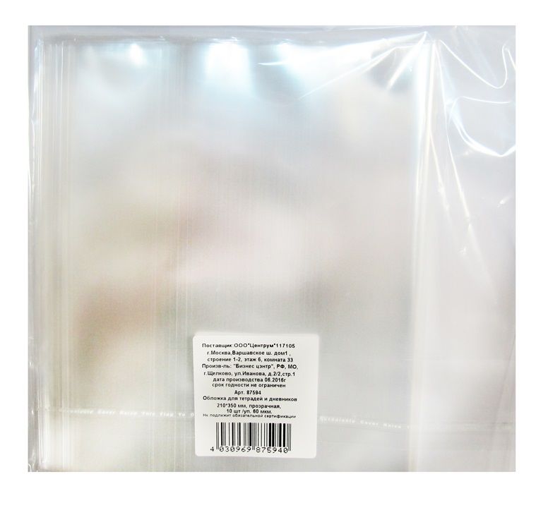 Обложка 190х236 60мкм для тетради и дневника 10шт ПП 1/10/100 купить оптом и в розницу в Нижнем Новгороде