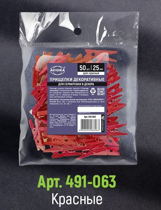 —Прищепки декоративные деревянные красные 25мм 50шт 1/50