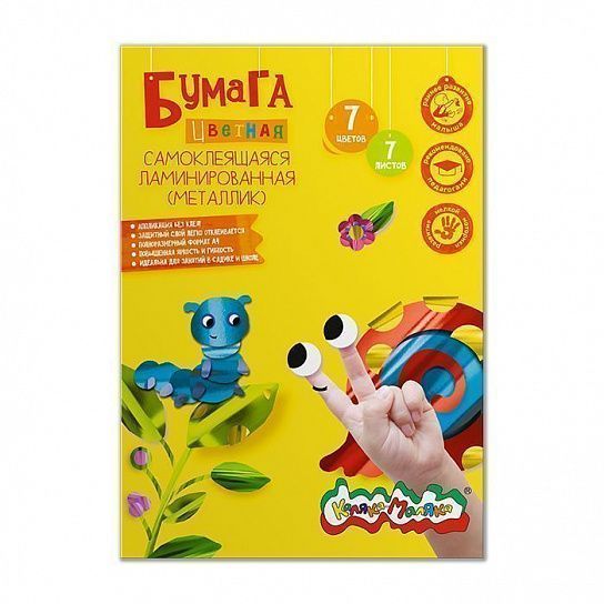 —Цветная бумага А4 7л 7цв самоклеящаяся металлик золото серебро Каляка-Маляка 1/150