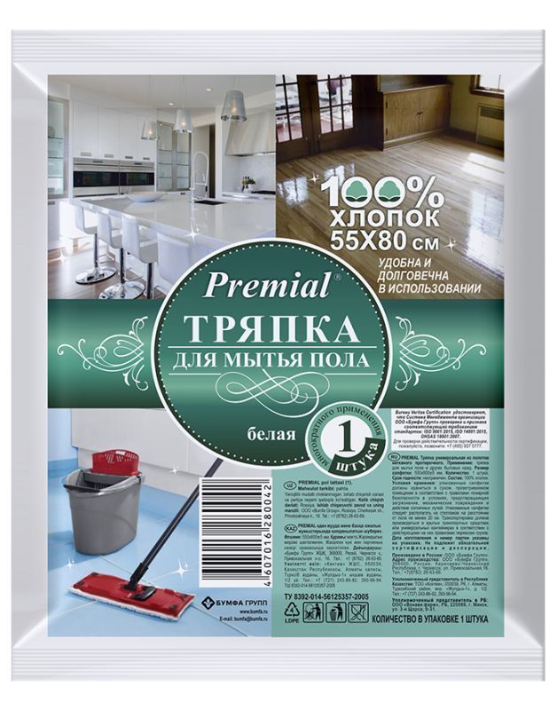 Тряпка для мытья пола (55х80) Premial 100% хлопок 190г/м2 1/30 купить в Нижнем Новгороде с доставкой оптом и в розницу