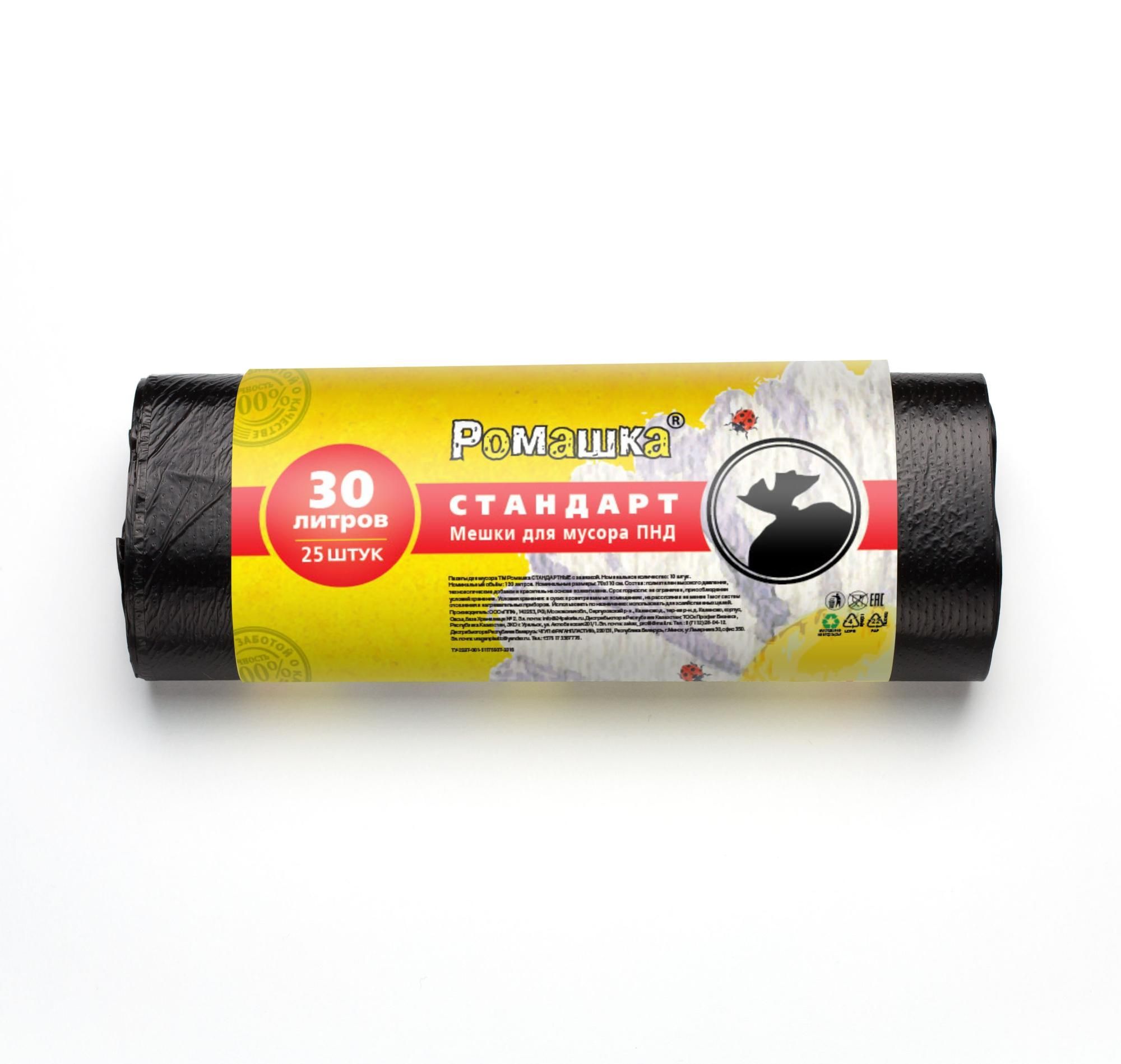 Мешок для мусора 30л рулон ПНД (50х60)-6 черные СТАНДАРТ 3г Ромашка (25шт) 1/35 купить в Нижнем Новгороде с доставкой оптом и в розницу