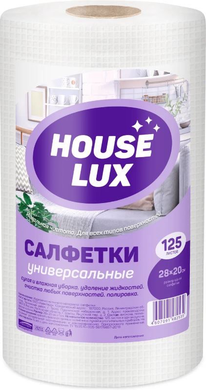 —Салфетки вискозные рулон (28х20) House Lux универсальные (125) 1/12