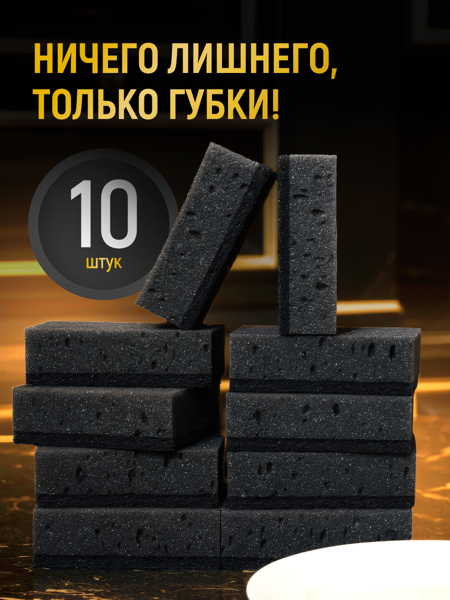 Губка для посуды (10шт) 98х66х30мм черная СТМ 1/30 купить в Нижнем Новгороде с доставкой оптом и в розницу