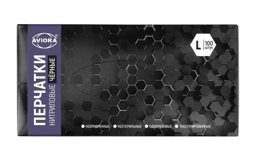 Перчатки смотровые нитриловые неопудренные Aviora черные L 4гр 50/500 купить оптом и в розницу в Нижнем Новгороде с доставкой