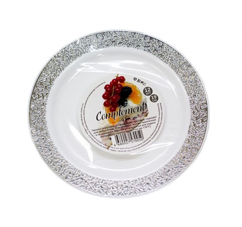 Тарелка пластиковая d-190 белая с серебряной ажурной каймой Compliment (12шт) 1/20 купить в Нижнем Новгороде с доставкой - УПАК.РФ
