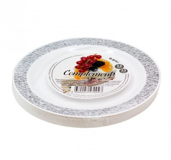 Тарелка пластиковая d-230 белая с серебряной ажурной каймой Compliment ламинированная (12шт) 1/20 купить в Нижнем Новгороде с доставкой - УПАК.РФ