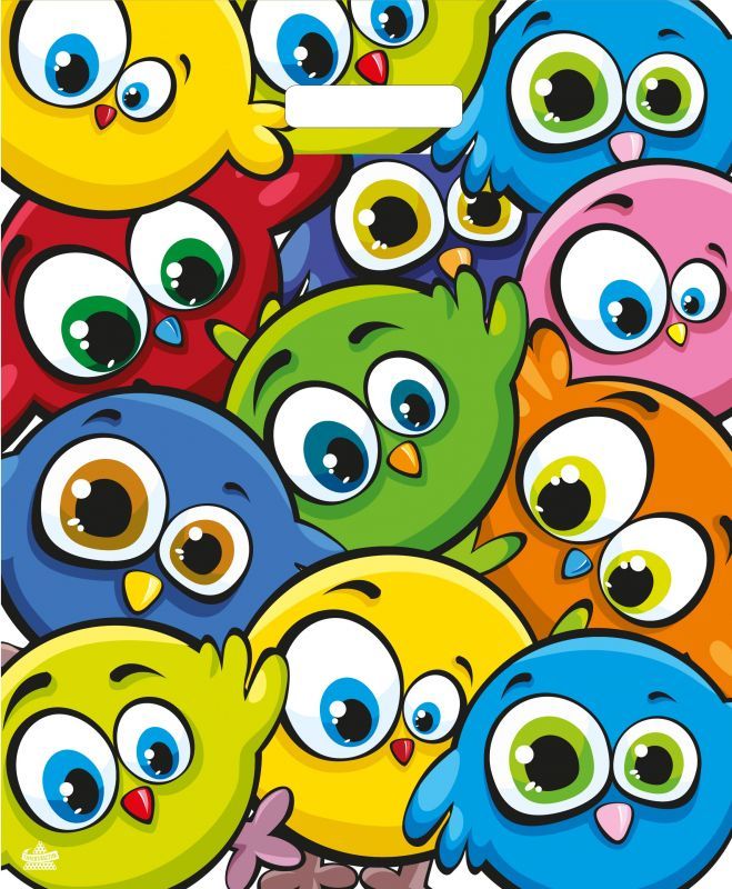 Пакет с вырубной ручкой (38х45)-60 Забавные птички Тико 50/500