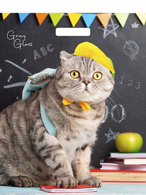 Пакет с вырубной ручкой (39х48)-50 Грэй Глосс Ученый кот Тико 50/500 купить в Нижнем Новгороде с доставкой оптом и в розницу
