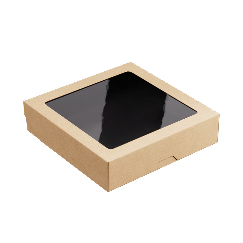 Контейнер бумажный с окном 1500мл 200х200х48мм крафт ламин черный внутри OneBox 1EA 25/150