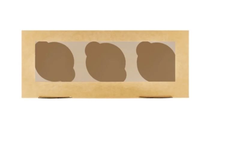 —Коробка для капкейков/маффинов с окном 250х100х100мм на 3шт картон ECO MUF 3 DoECO 25/150