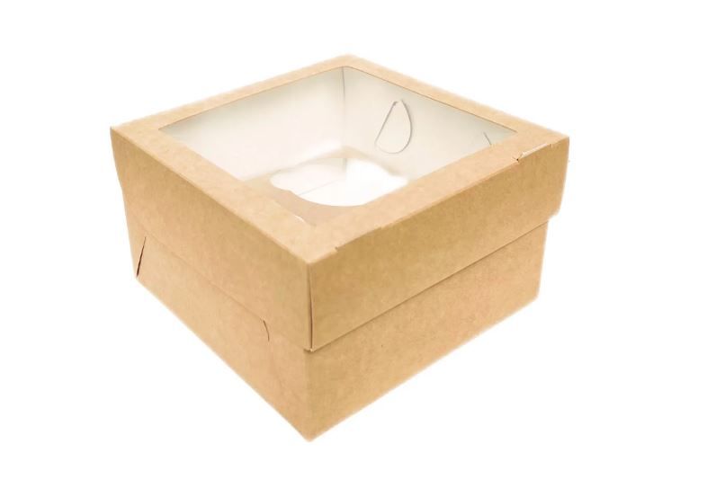 —Коробка для капкейков/маффинов с окном 160х160х100мм на 4шт картон ECO MUF 4 DoECO 25/150