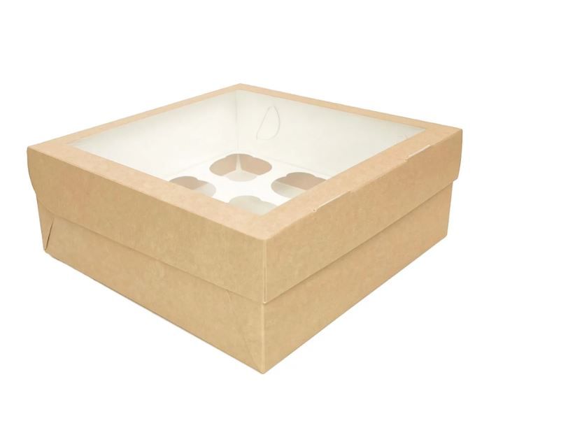 Коробка для капкейков/маффинов с окном 250х250х100мм на 9шт картон ECO MUF 9 DoECO 25/100 купить оптом и розницу с доставкой в Нижнем Новгороде