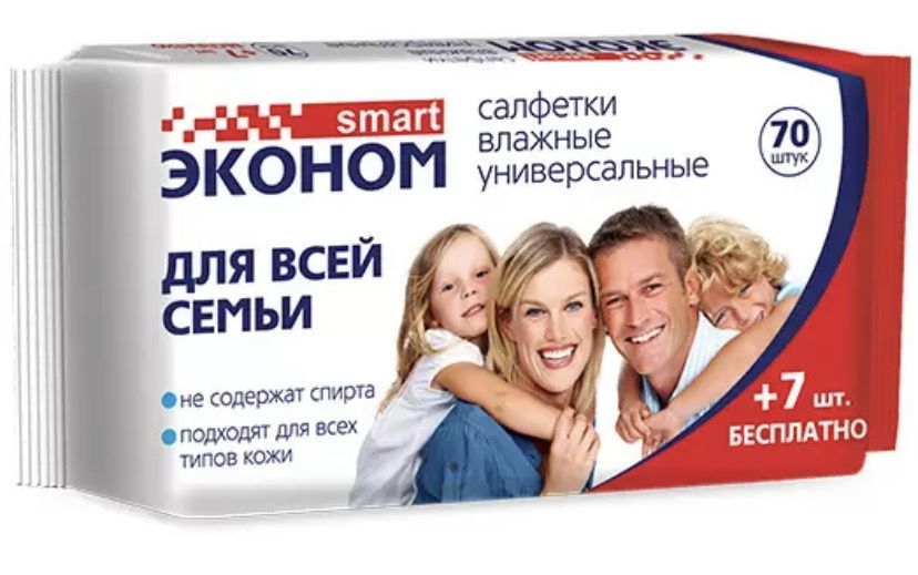 —Салфетки влажные Эконом Smart для всей семьи (77) 1/24