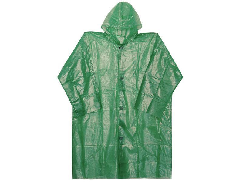 Плащ-дождевик с рукавами и капюшоном на липучке зеленый ПВД 70 мкм 1/50 купить в Нижнем Новгороде с доставкой оптом и в розницу