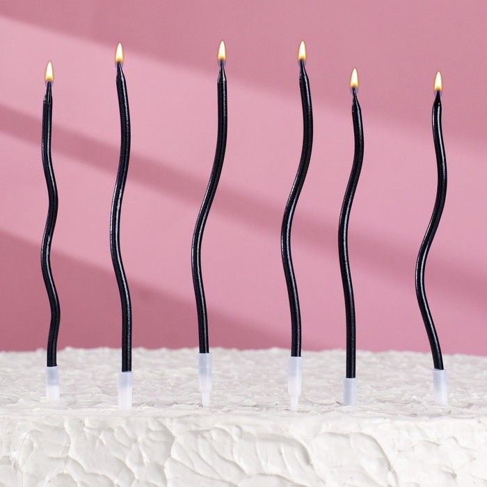 Свеча для торта Серпантин витые мокрый асфальт 6шт 1/400 оптом и в розницу в Нижнем Новгороде, цены в каталоге с доставкой