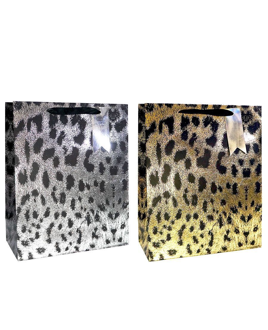 Пакет подарочный бумажный (18х23х10) Сияющий леопард 1/20 оптом и в розницу в Нижнем Новгороде, цены в каталоге с доставкой