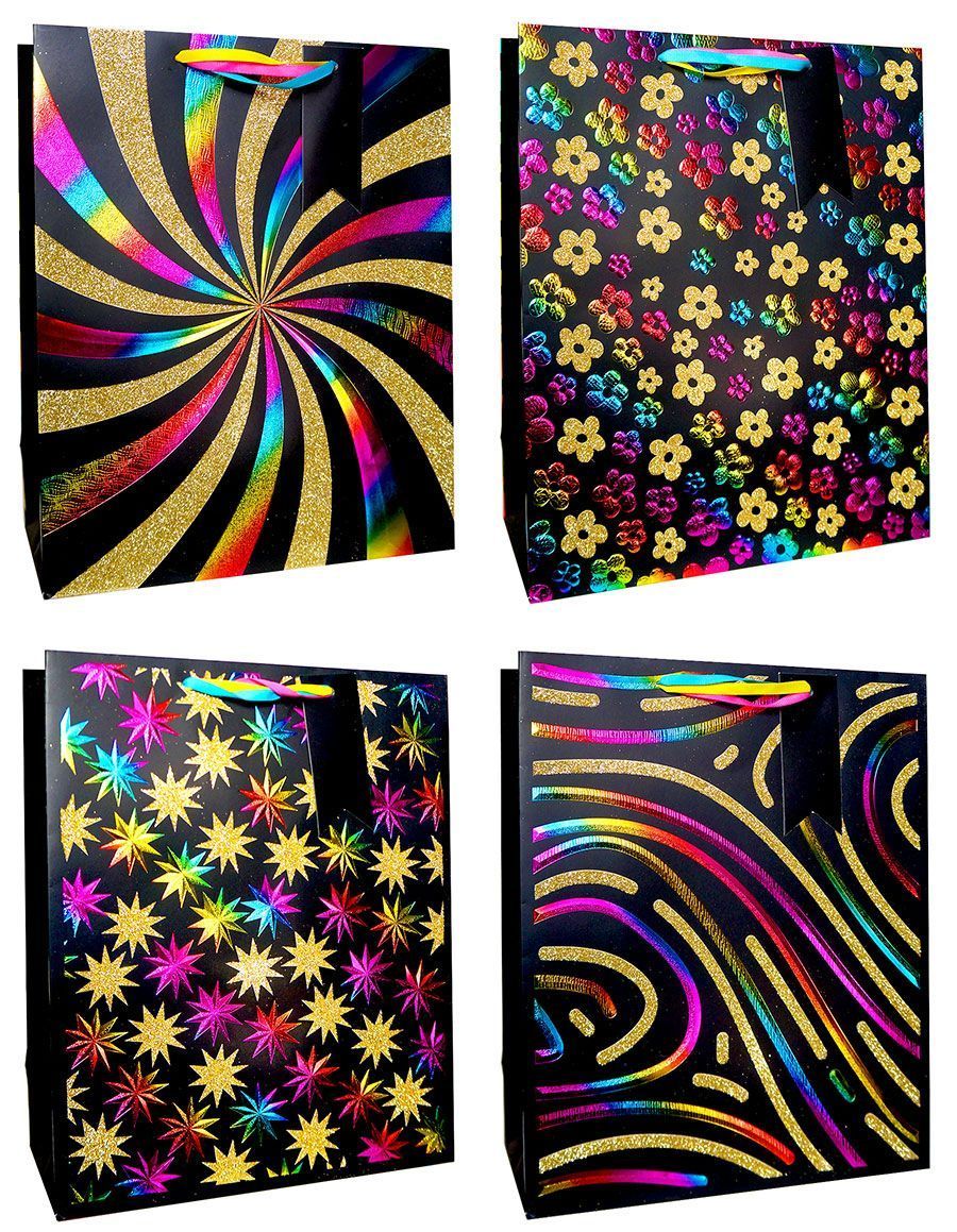 —Пакет подарочный бумажный (18х23х10) Люкс с мульти-тиснением и блестками Яркий калейдоскоп 1/12