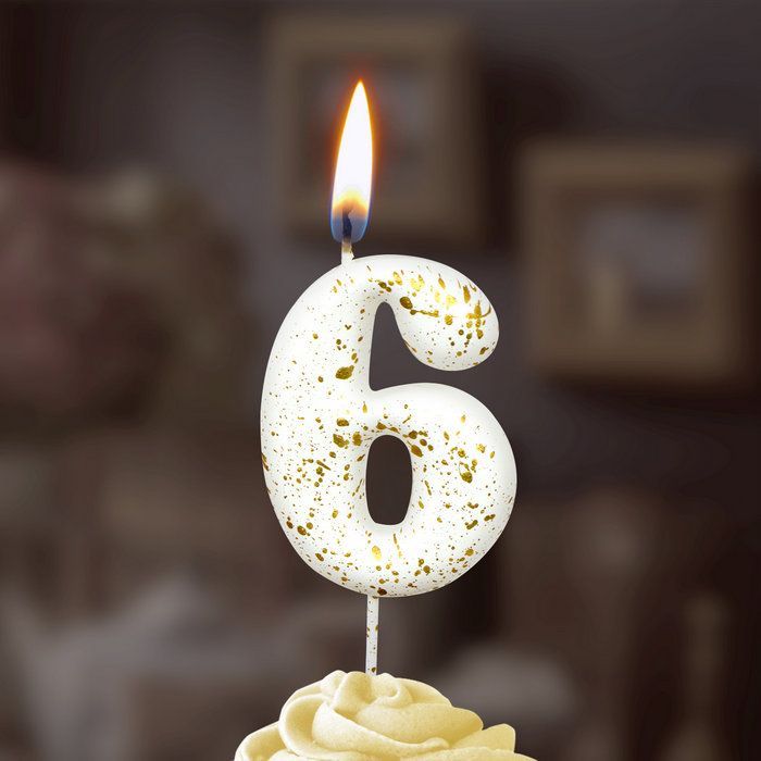 —Свеча для торта Белые брызги Цифра 6 1/30
