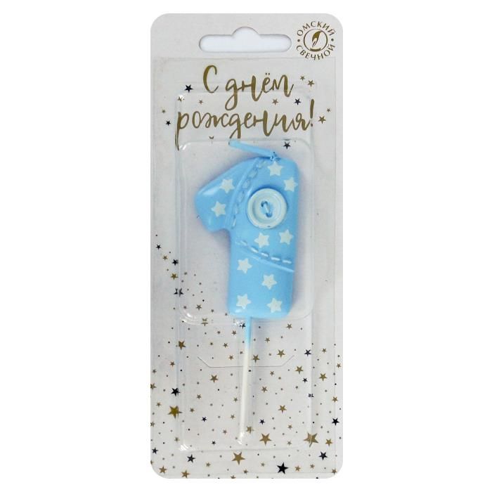 Свеча для торта с пуговкой 1 голубая 1/30 оптом и в розницу в Нижнем Новгороде, цены в каталоге с доставкой
