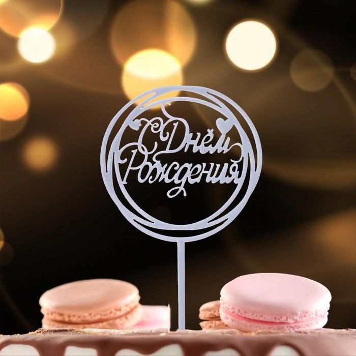 Топпер для торта С днем рождения, серебряный 1/20 оптом и в розницу в Нижнем Новгороде, цены в каталоге с доставкой